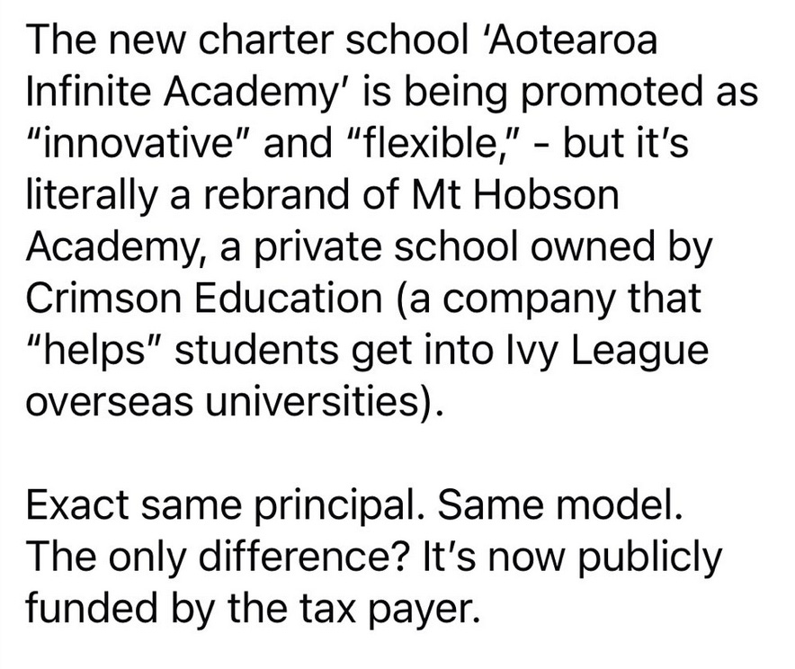 Same with our teachers, which has had $153 million re-allocated away from them to fund places like John Key / Crimson Beaton’s existing schools.