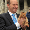 Fresh from his comedy career on Letterman, his rolling over puppy imitation for Warner Brothers, and other such high profile appearances. John Key has now taken to reprising the role of “The Man with No Name”. Milly the kitten is better known..
