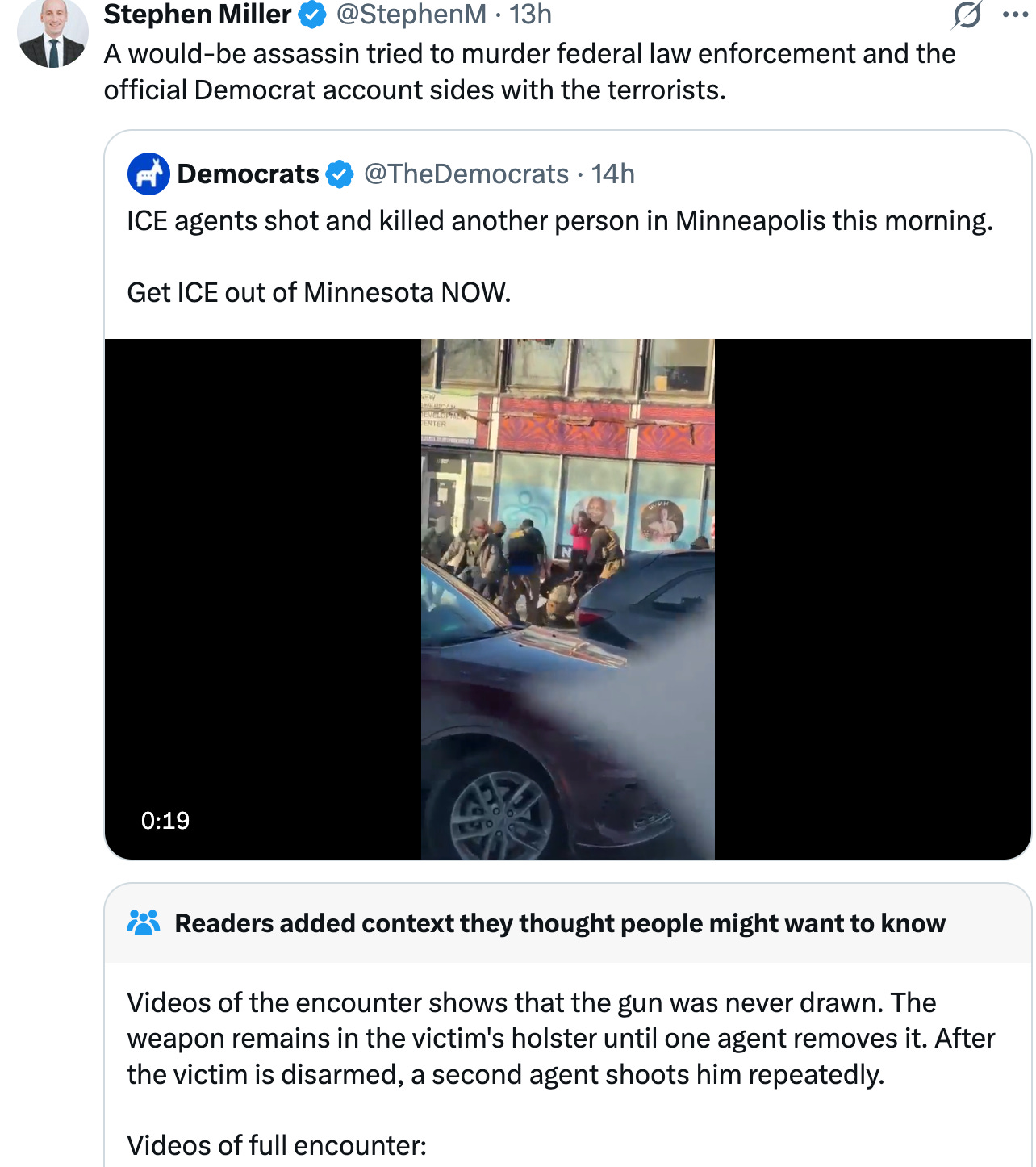 If the intention of enabling ICE to shoot people is to instil fear and make people less likely to protest, then what I want to know is if this is working or if it's going to lead to more and better resistance. To my mind this is a much more important question to be exploring than the endless rehashing of the minutiae of car vs body vs car. What happened matters, but there's a limit to what we can know at this time. What we can do is learn from that situation (and yes, I think in NZ we are not immune to this and should be learning, fast).