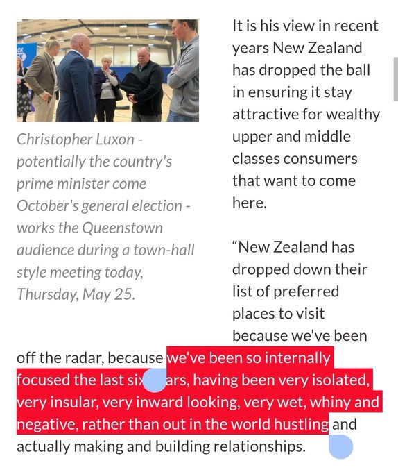 Luxon himself will waffle and wriggle and hope it goes away. It's always the double crime with Luxon: say the shitty thing (for one audience), and then pretend he didn't really mean the shitty thing (for the rest of us).