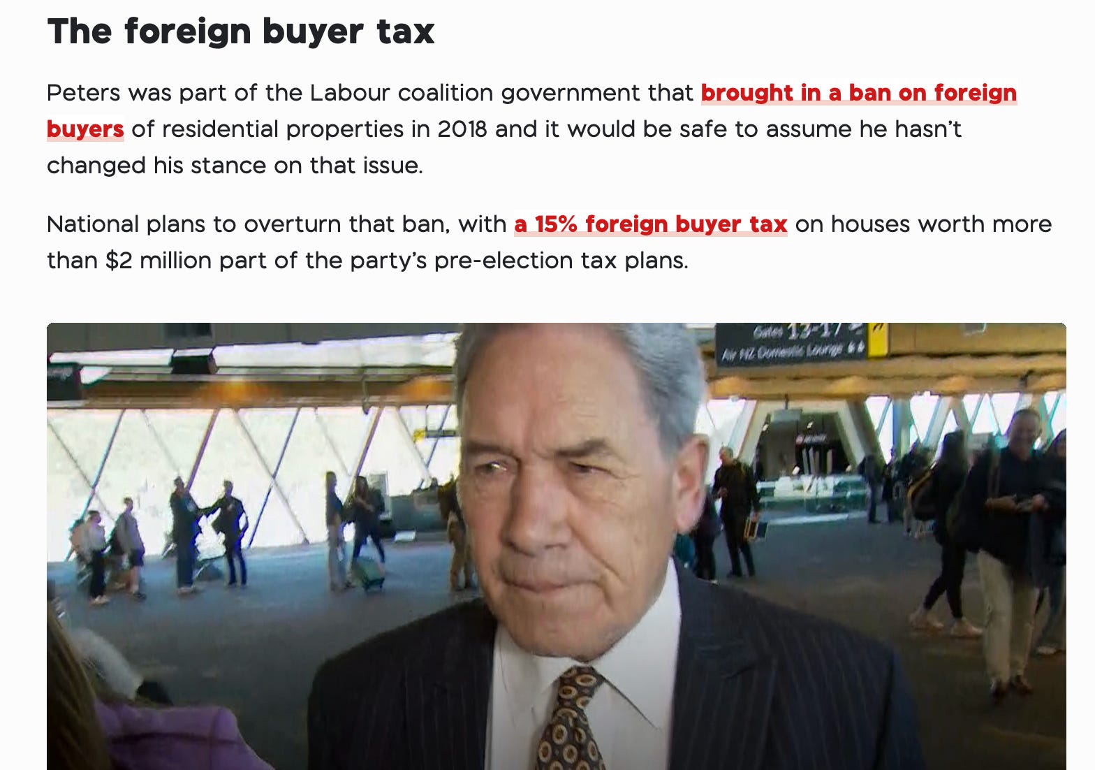 Peters campaigned on reversing and blocking National’s proposed foreign buyers tax in 2023.