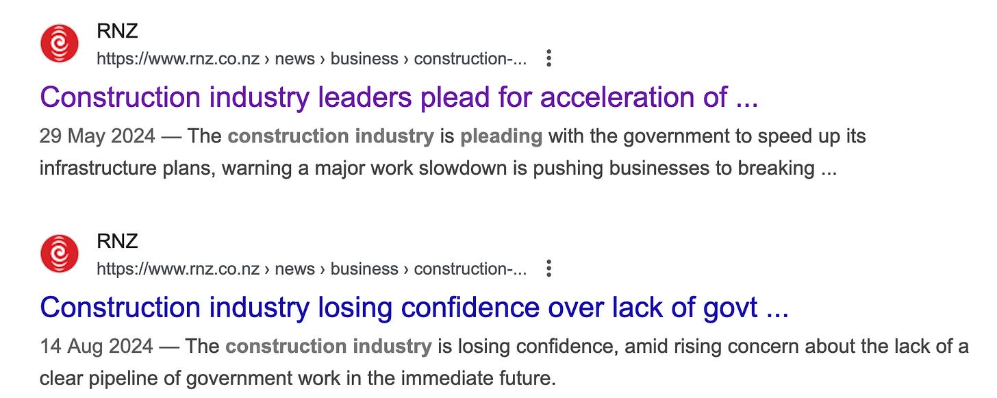 What is remarkable is just how little impact this has had on the governments poll numbers. The male heavy construction industry would have been a big supporter for National and it's pack hounds in the 2023 election.