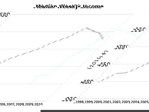 The real statistics on income comes from (duh!) the New Zealand Income Survey. This shows the median weekly pre-tax income. No prizes for spotting the trend here – these have been the worse two years for income since the survey started. This is what happens in a recession.