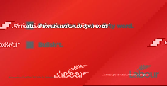 I love how this billboard makes out that you are either voting for National (Privatisation is not a dirty word) or Labour (Bullsh*t).