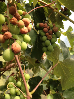 Despite all vents and doors being open my little green house became a pressure cooker and the temperature gauge in it hit around 50 degrees causing my crop of grapes to brown and shrivel.