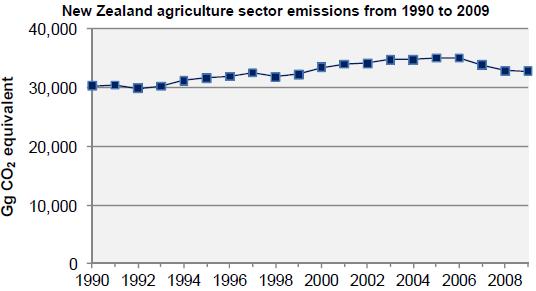 Despite saying ‘yes, we are planning to bring agriculture in’, it’s clear that National is setting up a line of ‘we want to bring them in but there’s no way for them to reduce emissions, so it’s not fair to charge them’. Carter repeatedly states that there’s no scientific solutions to reducing farm emissions. But it’s just not true. Indeed, agriculture is already reducing its emissions, especially when you look at the comparison between economic output and greenhouse pollution. (sources: MFE and Stats)