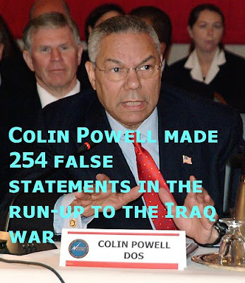 Yes, I particularly enjoyed the careful reasoning evident in the bit where he defiantly insists that Colin Powell, who is a contender for the title of The Most Notorious Liar The World Has Ever Known, is a “distinguished statesman”….