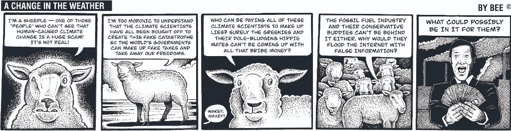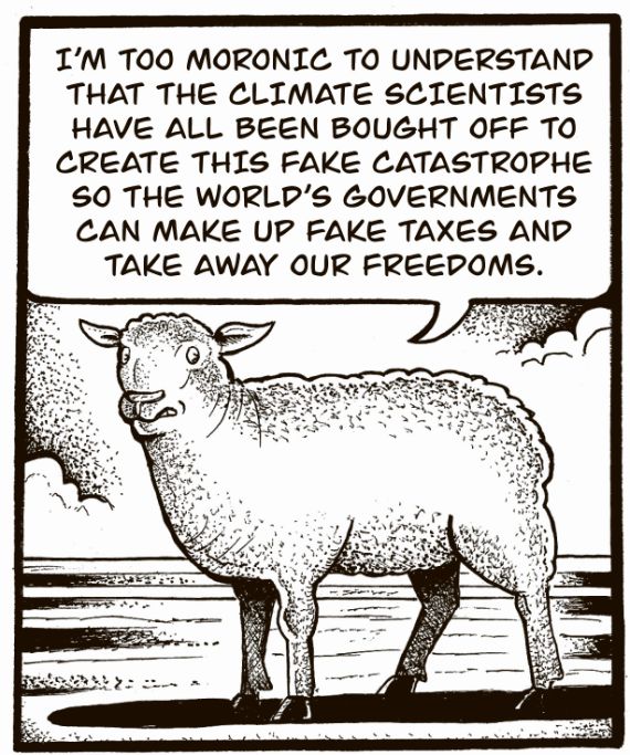 This cartoon could be mocking comments ["We need more CO2 not less"!] under Ian Wishart's latest story in the 'Centrist', set up by billionaire Jim Grenon.