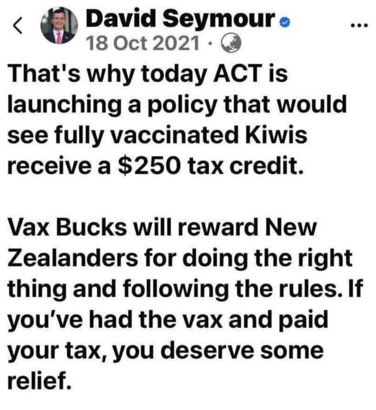 Too many ACT voters forget ACT advocated for vaccines – even offering money in exchange for vaccination.