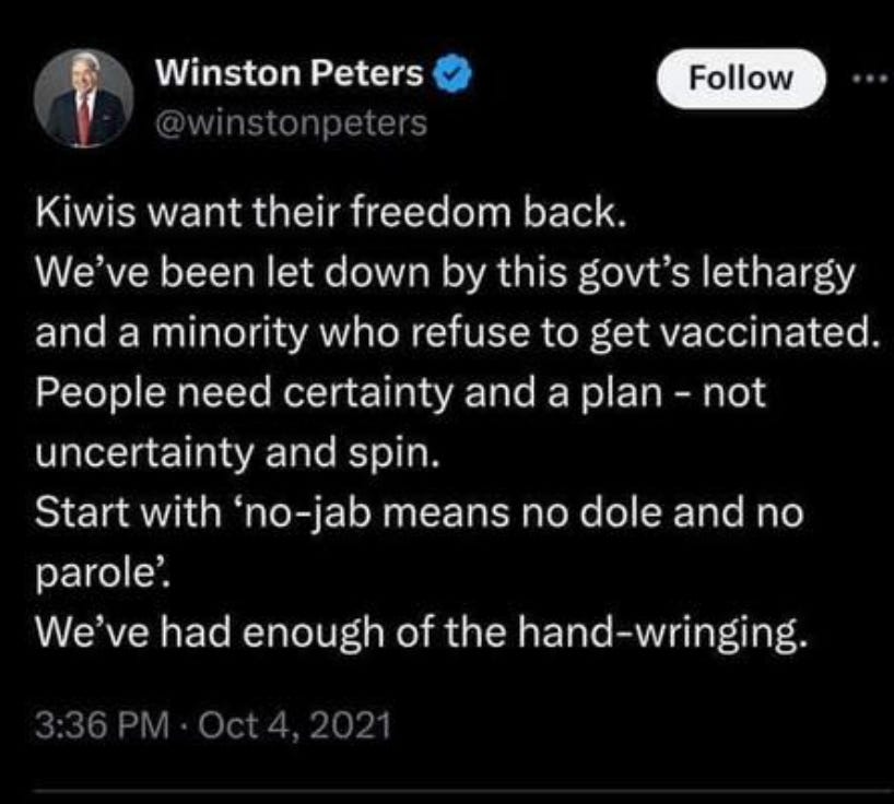 But most of NZ First’s supporters forget that Winston Peters was at the helm of the Covid-19 leadership response.