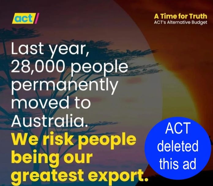 But with a record 70,000 Kiwis moving per year since they formed government, with a majority of working age and never returning again, it’s easy to understand why ACT deleted their ad.