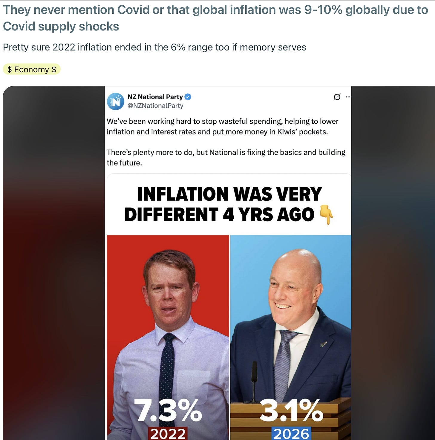 The trendline was always forecast to come down in this manner, post Covid, but National are too eager to take credit for economic outcomes completely unrelated to their actions, but also refuse to acknowledge and take action in areas they directly contributed to.
