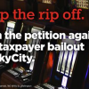 The Labour Party is organising a petition against the $140 million bailout SkyCity is demanding – and John Key is insisting we have to pay to prevent getting an “eyesore” of a convention centr