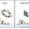 The cartoon (since it doesn’t show up clearly and you might be wondering) is a lifebelt being thrown in the “Welfare” cell and a book titled “Learn to swim” being thrown in the second “Welfare Reform” cell.
