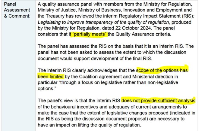 The irony that the regulatory impact statement for the Regulatory Standards Bill does not meet the quality assurance standards set by the Ministry of Regulation . Kafka would be proud