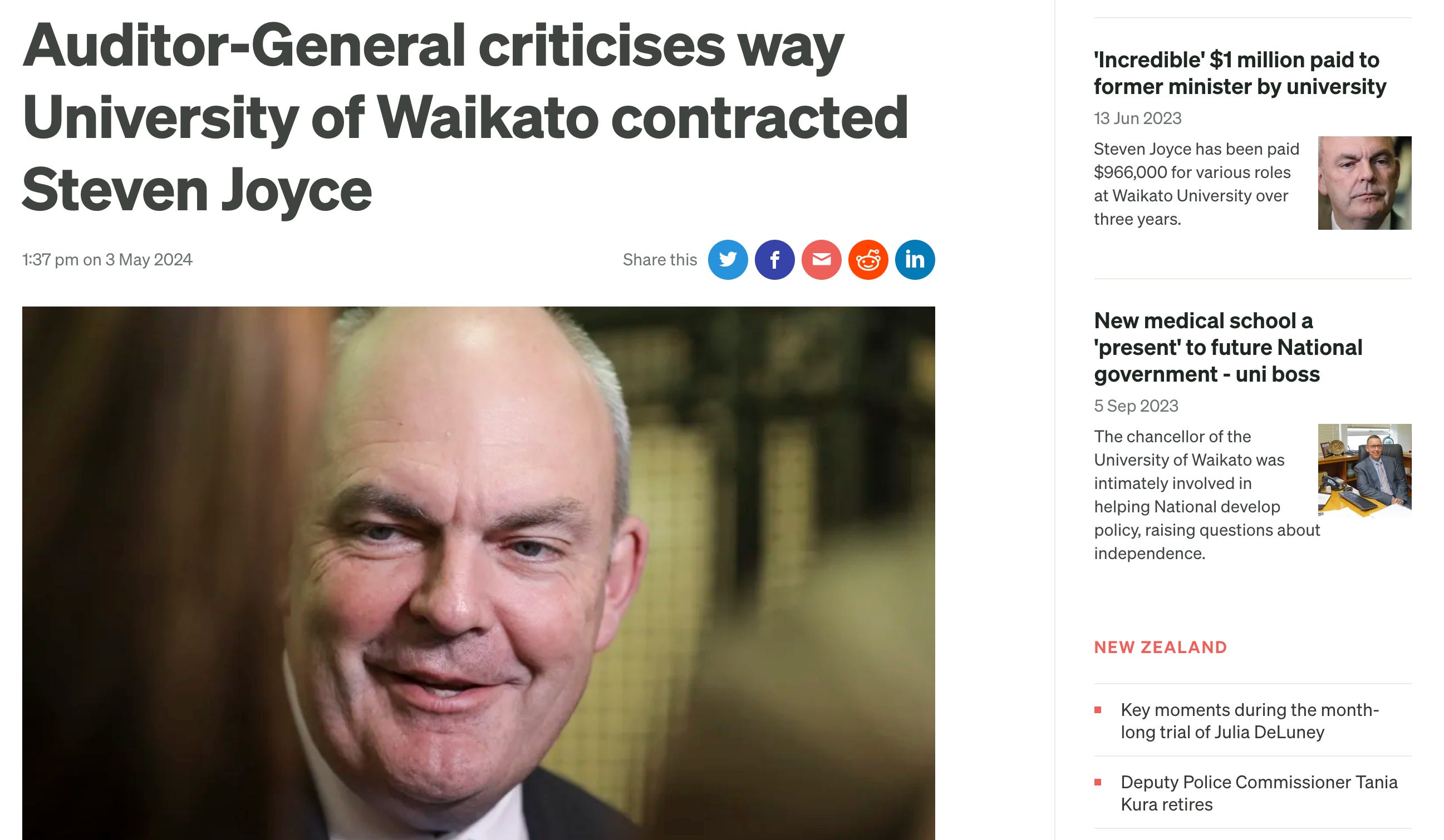 $1.1 million to Steve Joyce by Waikato University. Joyce advised Waikato on how to lobby for a new medical school