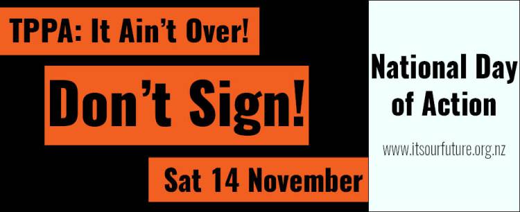 I strongly urge as many people as possible STAND UP – on the streets – to be counted, against the TPPA, which has NOT yet been signed!