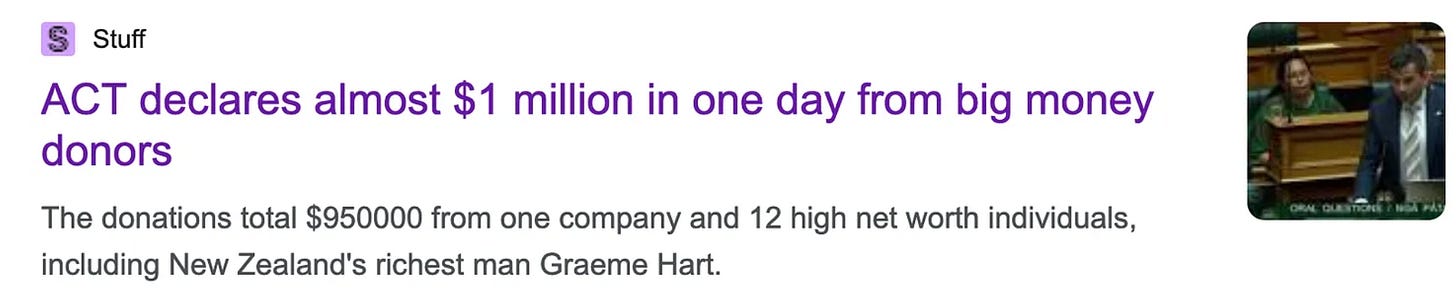 As well as enjoying the favour of NZ’s uber-wealthiest, media conglomerate NZME’s Chair is Steve Joyce, who was also awarded King’s Honours4 this year on Cabinet’s recommendation.