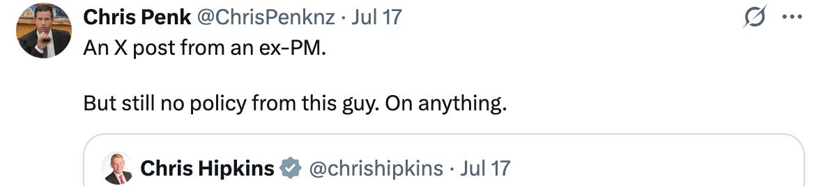 But ironically, what he doesn’t seem to grasp is that Labour’s current silence actually benefits him. Right now, the policy vacuum allows National to shape the public narrative about what Labour supposedly stands for:filling the silence with whatever framing suits them.