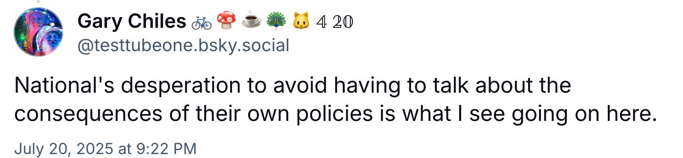 Note: Within a day of publishing this article, Nicola Willis was on 1News pushing for Labour policies when asked about higher inflation, and Christopher Luxon also asked where Labour policies are, when he was criticised for his Family Boost failures.