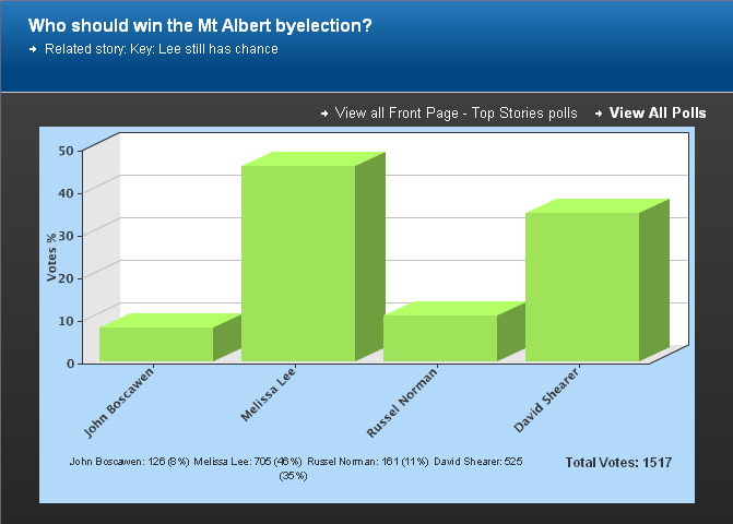 I honestly thought that Nat/ACT people have software that votes multiple times and can leave a trail of different IP I/Ds. It is “someones’ job at HQ, kiwiblog or similar to flip the switch most days. It cannot be every day as there are abberrations such as Helen Clarks (close) win in the greatest living NZer one.